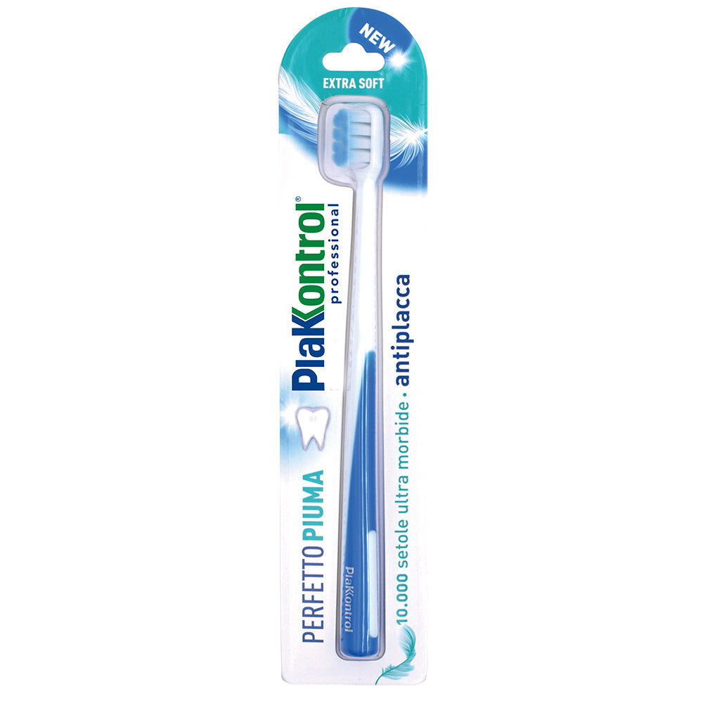 Plakkontrol Perfetto Piuma to szczoteczka do zębów z 10 000 ultracienkich włókien, idealna do delikatnego usuwania płytki nazębnej bez uszkadzania szkliwa i dziąseł.